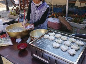 生地には、小麦粉(昔はそば粉)にショウガ、ネギ、味噌を混ぜ込みます。川上村に伝わる昔ながらのやり方で、茅葺き屋根の家に集まっていろりを囲み、皆で作って食べました。
